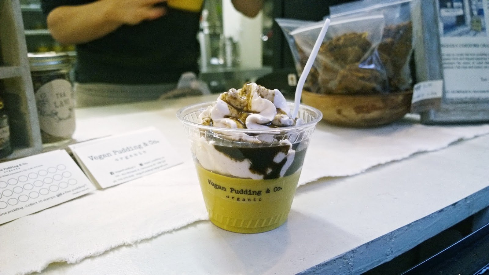 I finally went to the Vegan Pudding Co. I've been wanting to come here ever since Fatmine and I passed by it before it officially opened. The texture of the pudding is like pumpkin pie, and the Vegan whipped cream and pudding itself seem to be coconut based. If you like your pudding thick, this place makes their pudding thick :)